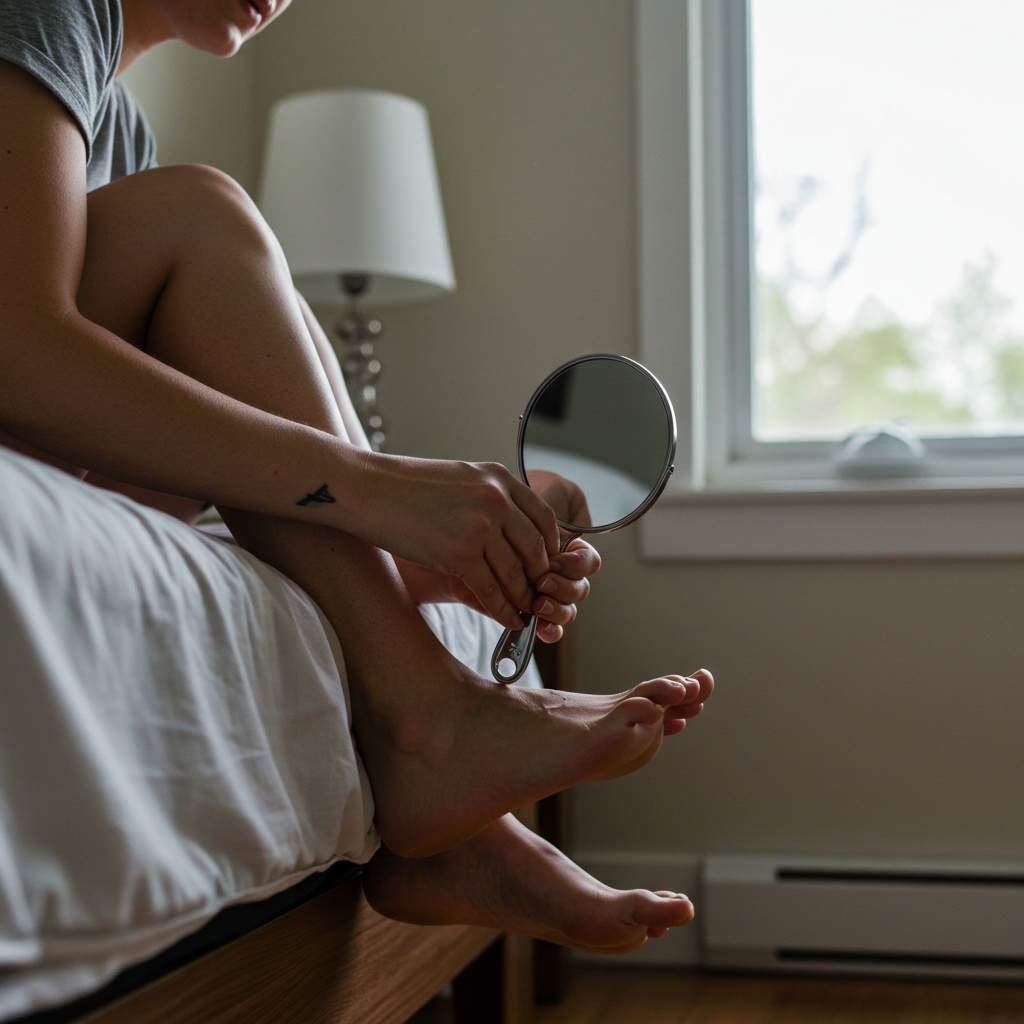 밝은 조명 아래서 발바닥, 발가락 사이, 발톱 주위까지 꼼꼼하게 살펴보세요. 시력이 좋지 않거나 허리를 굽히기 어렵다면 손거울을 이용하거나 가족에게 부탁하는 것이 좋습니다.