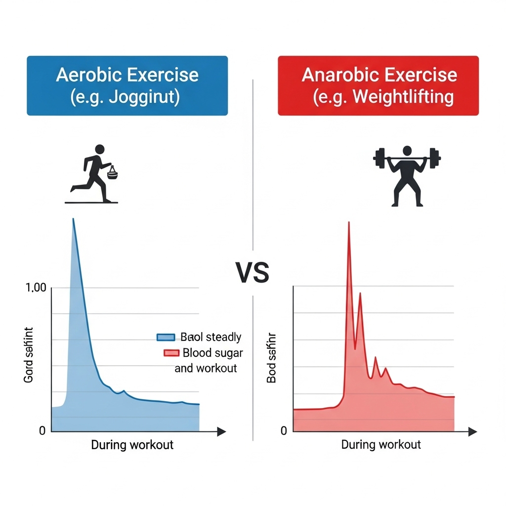 모든 운동이 혈당을 올리는 것은 아닙니다. 어떤 종류의 운동을 하느냐에 따라 혈당 반응은 정반대로 나타날 수 있습니다.