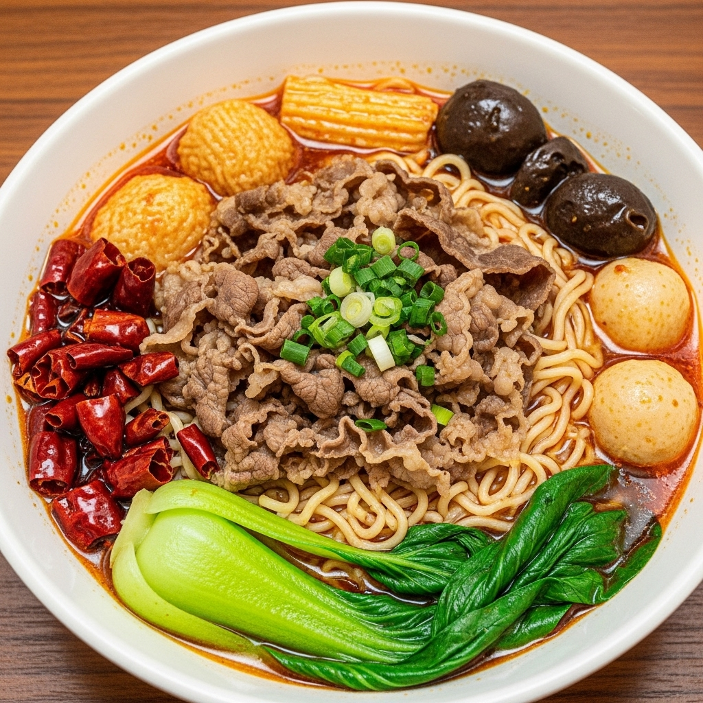 - 국물: 얼얼한 마라 소스와 땅콩 소스 베이스의 국물은 나트륨과 지방 함량이 매우 높습니다. 높은 염분은 혈압을 올리고, 지방은 혈당 흡수를 지연시켜 뒤늦은 고혈당(자세한 내용은 피자 효과)을 유발합니다.