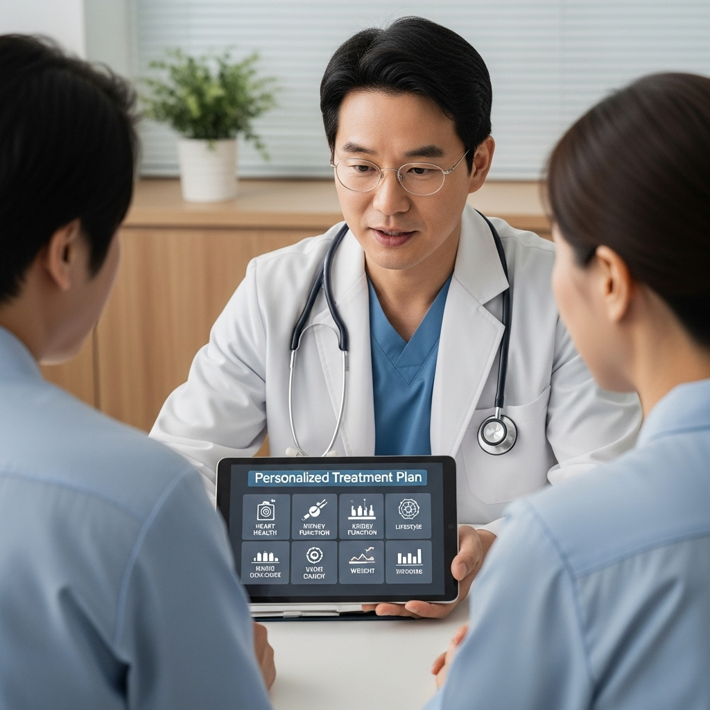 이것이 바로 '초기 병용요법'의 핵심입니다. 환자가 가진 동반 질환(심장병, 신장병, 비만 등)과 위험 요인을 진단 초기부터 종합적으로 평가하여, 가장 효과적인 두세 가지 약물을 처음부터 함께 사용하는 것입니다. 이는 더 빠른 혈당 안정과 장기적인 합병증 예방에 훨씬 유리하다는 연구 결과들이 뒷받침하고 있습니다.