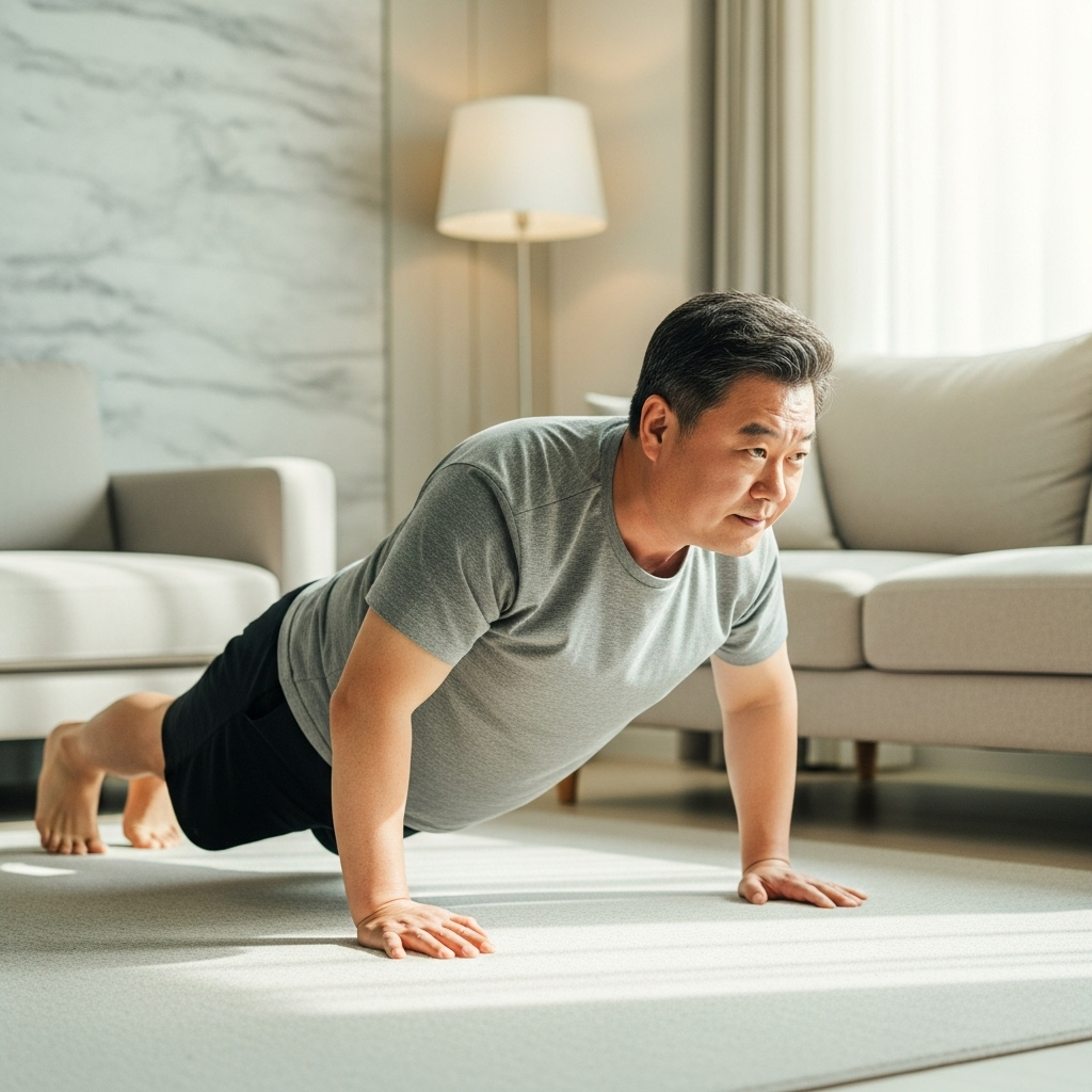 - 추천 운동: 헬스장에 가지 않아도 좋습니다. 맨몸 운동(스쿼트, 런지, 팔굽혀펴기)이나 가벼운 덤벨, 탄력 밴드를 이용해 집에서도 충분히 할 수 있습니다.
