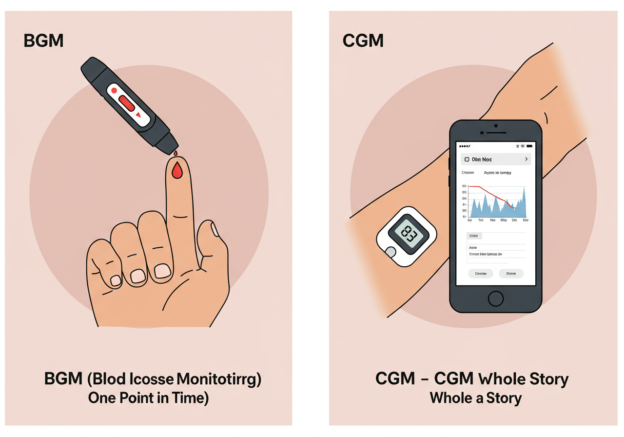 CGM은 기존 채혈 방식(BGM)과 비교해 명확한 장점과 단점을 가집니다.